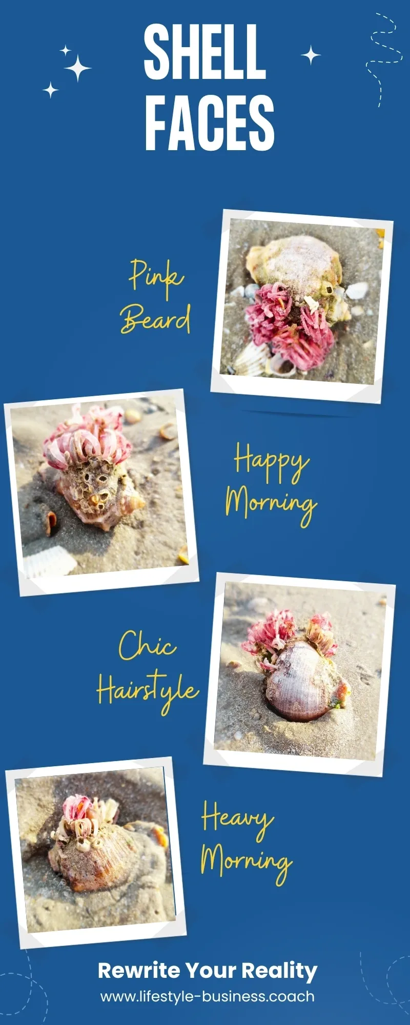 I noticed this pattern mapping function of my brain while I was walking on the beach and saw funny faces in some of the shells. As you can see in the info-graphic below, my brain even named these funny shell faces.