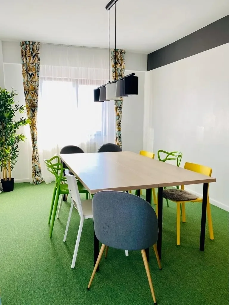 Cameră cu masă și 4 (+2) scaune, ideală pentru întâlniri de business, cursuri, ateliere.
